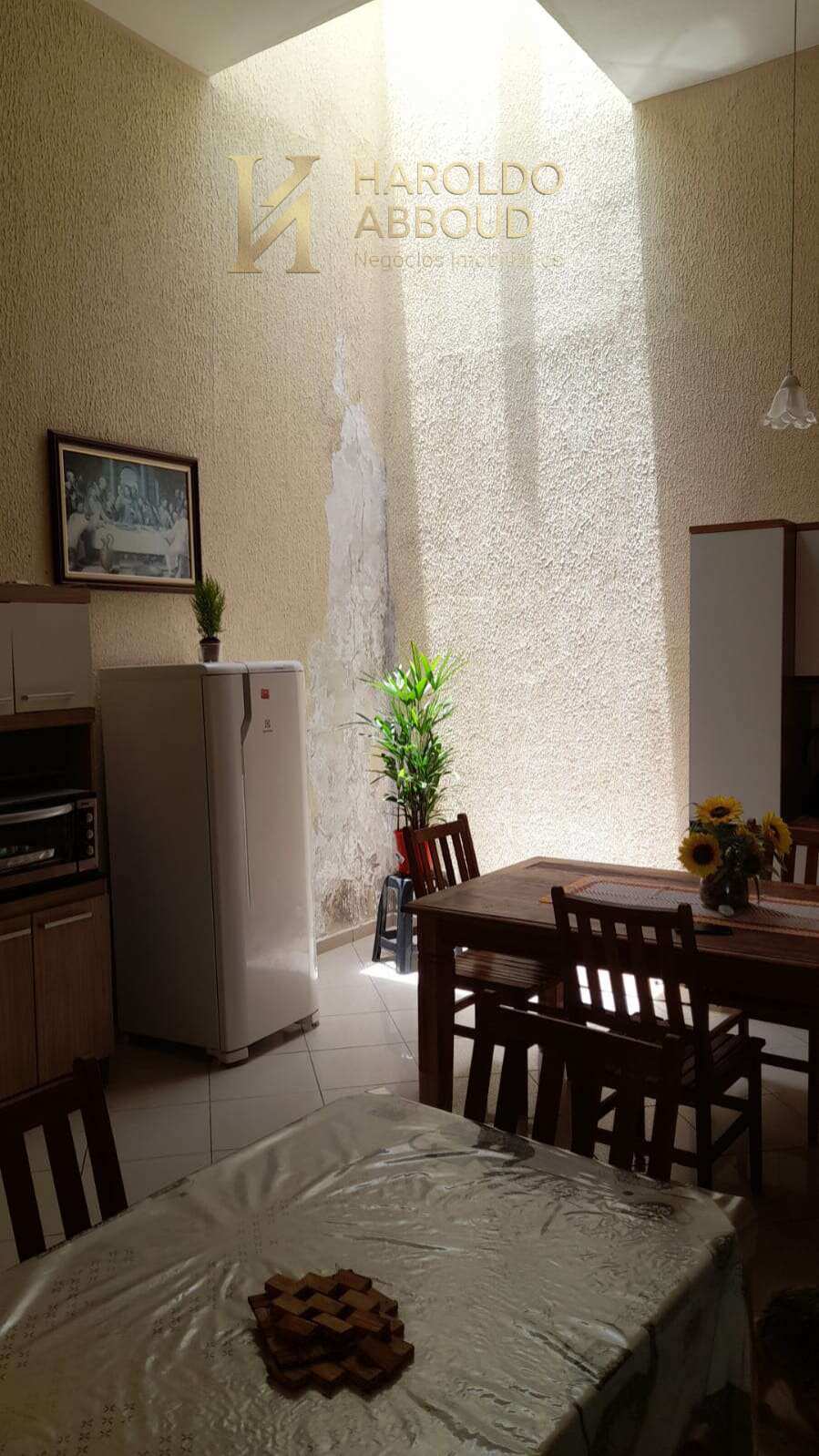 O térreo ainda conta com ponto comercial com salão e cozinha, banheiro social totalizando 24 metros quadrados
