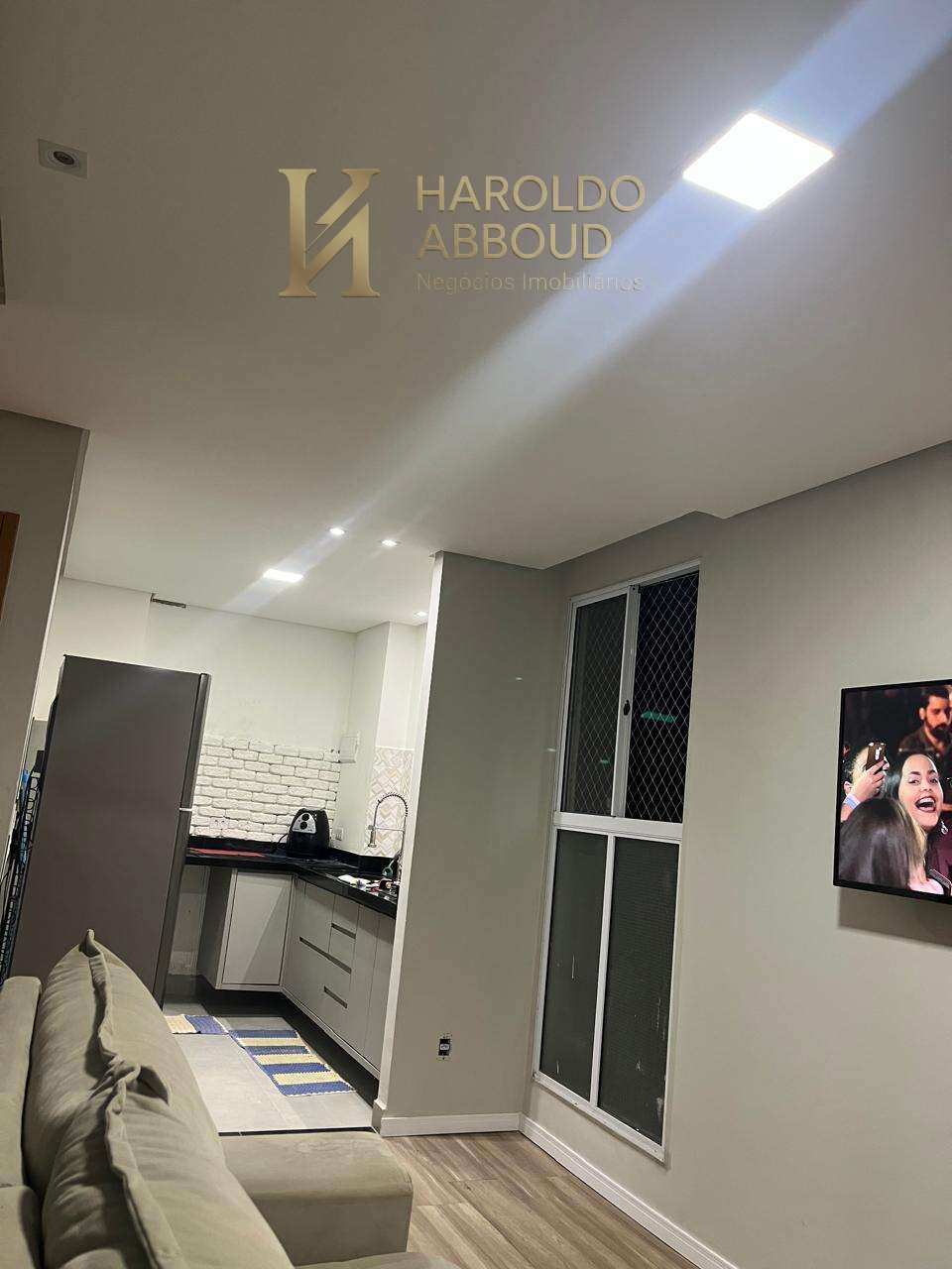 Quarto do casal e cozinha com armários planejados, teto de gesso rebaixado e piso vinilico em todos os ambientes.